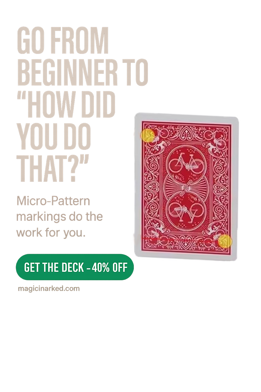 These cards have discreet hidden marks that let you identify any card instantly — even if you're a total beginner. Read any card at a glance, stay completely undetected, and make simple tricks look impossible.